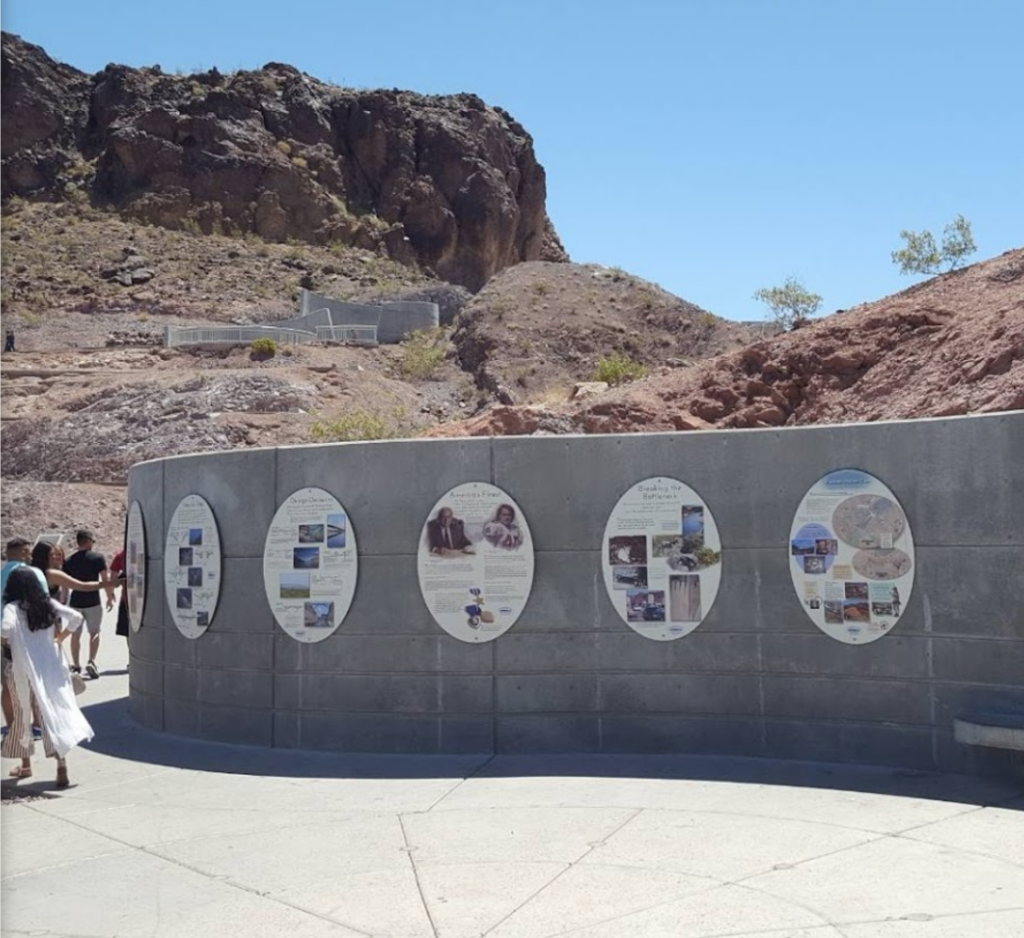 Access to the bridge and to Hoover Dam carries many security and safety restrictions. It is suggested that visitors go to usbr.gov/lc/hooverdam/crossingguide before planning a visit. Pedestrians can walk on the bridge area designated as Memorial Bridge Plaza. There are numerous plaques, signs, and engravings in and around the plaza that tell the story of the construction and explain the backgrounds of the two men the bridge is named after. At the Nevada entrance, a circular bronze plaque contains this inscription: