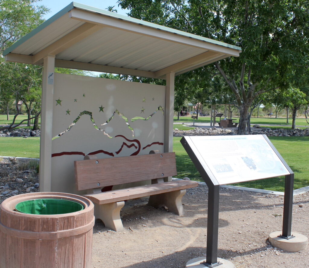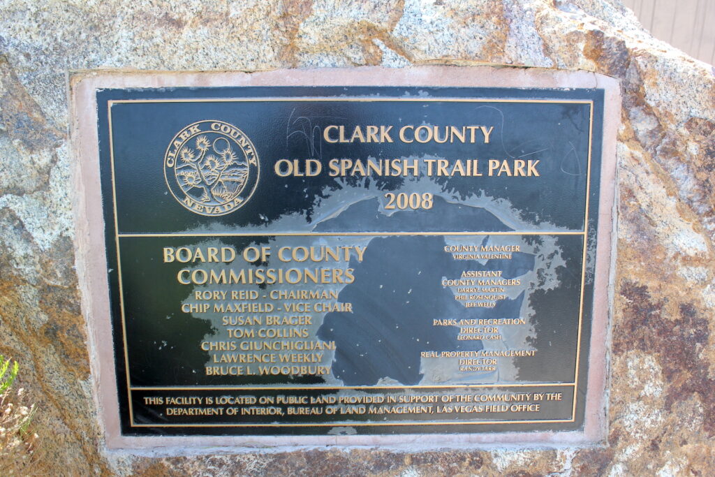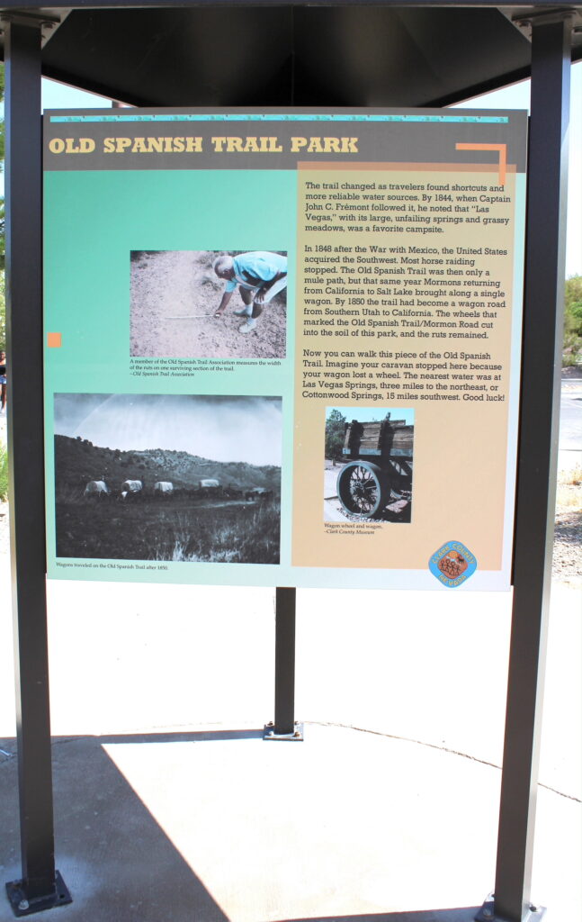 A series of 12 plaques and informative signage with descriptions and photographs detailing the history of the Old Spanish Trail, all in a park setting. The trail brought Europeans to and through Nevada and what became Las Vegas in the 1800’s. Aside from signage and a footpath and grassy areas for visitors, the park is kept in a natural state with sand, rocks and weeds similar to as it originally was when the battalion initially came through. The park was established in 2008.
